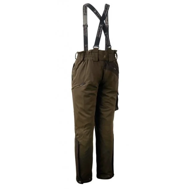 Muflon jagtbukser fra Deerhunter er vind- og vandtætte takket være den åndbare Deer-Tex membran. 3M? Thinsulate? isolering holder dig varm ved stillestående jagt. Bukserne har mange fede detaljer som aftagelige seler, formsyede knæ, forstærkninger i ruskind og vandtætte lynlåse.