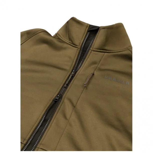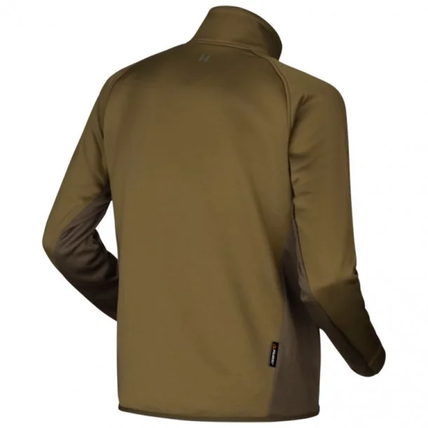 Borr Hybrid Fleece fra Härkila har tovejs-lynlås, brystlomme med lynlås på venstre side af brystet og to rummelige frontlommer med lynlås. Fleecetrøjen har en høj krave samt elastiske bånd ved ærmegabene og i bunden.