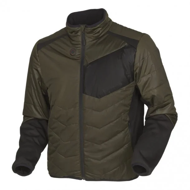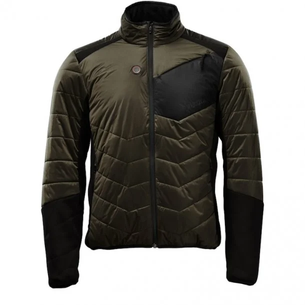 Denne innovative jakke fra Härkila har en indvendig varmereflekterende for, der forhindrer varmetab og forstærker effekten af jakkens varmemembraner. I kraven på jakken er der foret med blød fleece, og på de mest kuldeudsatte steder på overkroppen, som er mellem rygstykkerne og på lænden, er der indsyede varmemembraner. Jakken bliver opvarmet ved at tilslutte en powerbank som opvarmer de indbyggede varmemembraner. Kan tilkobles Härkilas helt egen Heat Control app, så du med din smartphone kan regulere varmen mellem 32°C og 52°C. Du har også mulighed for at regulere varmen mellem 38°C, 46°C og 52°C med trykknappen på brystet. Jakken kan maskinvaskes.