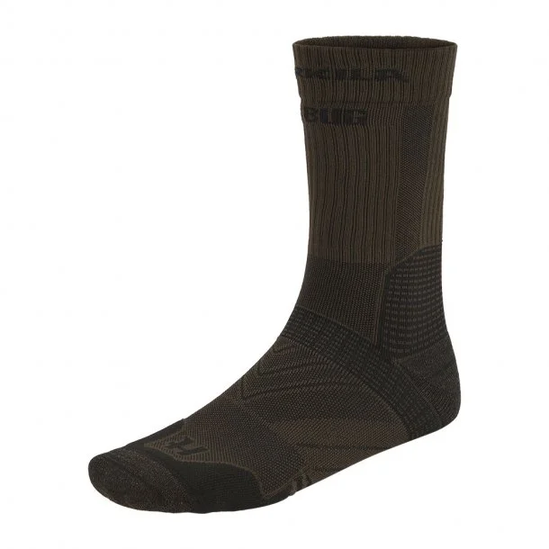 Trail Sokker fra Härkila er ideel til jagt på de varmere dage, da de udviklet med mange mesh områder, der øger åndbarheden. Dertil er de fremstillet i det tekniske materiale “Dryarn”, som er højtydende fibre, der gør sokkerne praktiske og komfortable at bruge, da de er lette, isolerende og åndbare. Sokkerne er behandlet med en antiinsekt og -myg behandling, som beskytter mod tæger og flåter samt andre insekter.