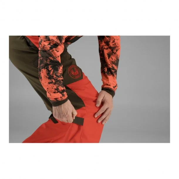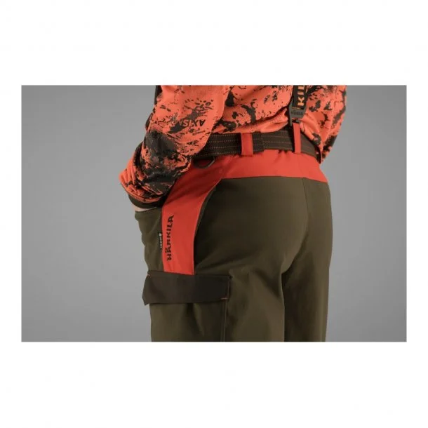 Wildboar Pro Bukser fra Härkila er fremstillet i et kraftigt AirTech-stof, der er et vindhæmmende, slidstærkt, samt vand- og smudsafvisende kanvasstof. På buksernes front og bagpå er der indsyet et særligt strikket beskyttelsesstof i polyethylen, der gør, at de er certificeret og godkendt som beskyttelsesbeklædning til vildsvinejagt. Wildboar Pro Bukser fra Härkila er med Gore-Tex-membran og Durable Water Repellent-behandling, som gør, at bukserne kan modstå et højt vandsøjletryk, er meget slidstærke og åndbare samt vand- og smudsafvisende. Bukserne har gode rummelige lommer, indsyet kroge ved anklerne til fastgørelse til snørebåndene samt justeringsremme ved ankler og bag knæene.