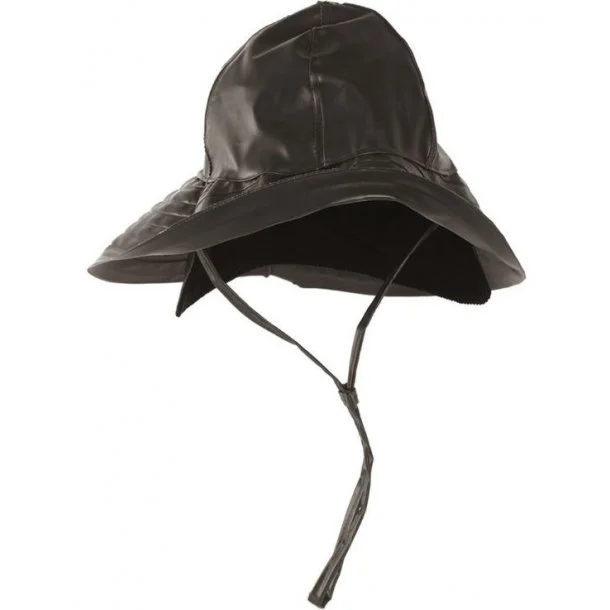 Sydvest Regnhat i sort er en klassisk regnhat som er blevet brugt af fiskere i mange år. Regnhatten har en bred skygge, især bagtil hvilket sikrer at du ikke får regn i nakken.