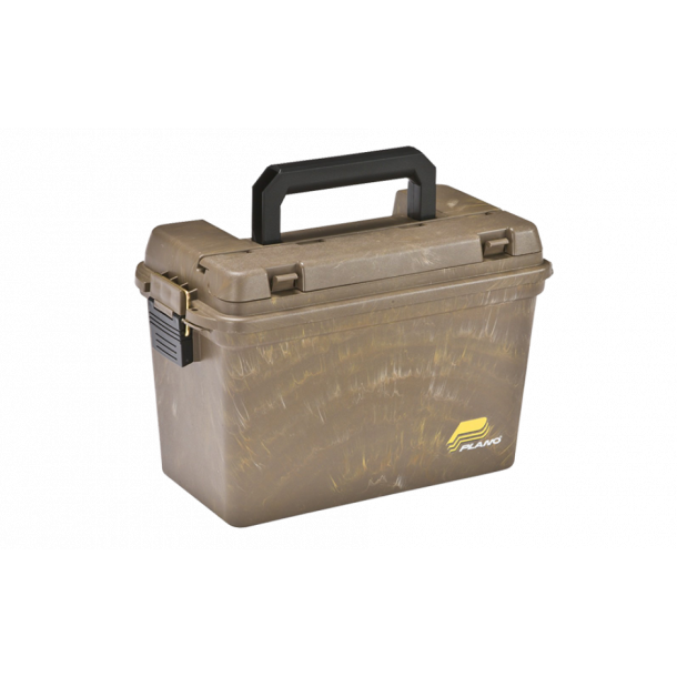 Vandtæt ammunitionskasse i slagfast plastik fra Plano. Kassen har en rummelig udtagelig bakke med plads til diverse redskaber. Kassen kan stables og er udstyret med et robust bærehåndtag.
