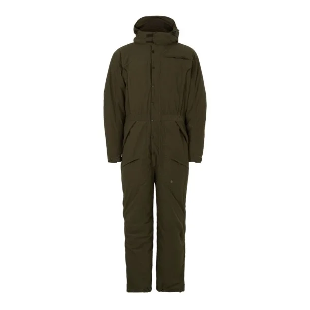 Som en bonus er dette onepiece både vind-og vandtæt, på grund af SEETEX-membran, så et blæse eller regnvejr ikke skal hindre dig i at gå på jagt. Af rene praktiske funktioner er der en aftagelig, justerbar hætte så du enten kan tilpasse den til hvad du finder behageligt eller tage den helt af når det passer dig. Herunder er der også justerbare ærmekanter med vindfang.