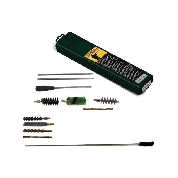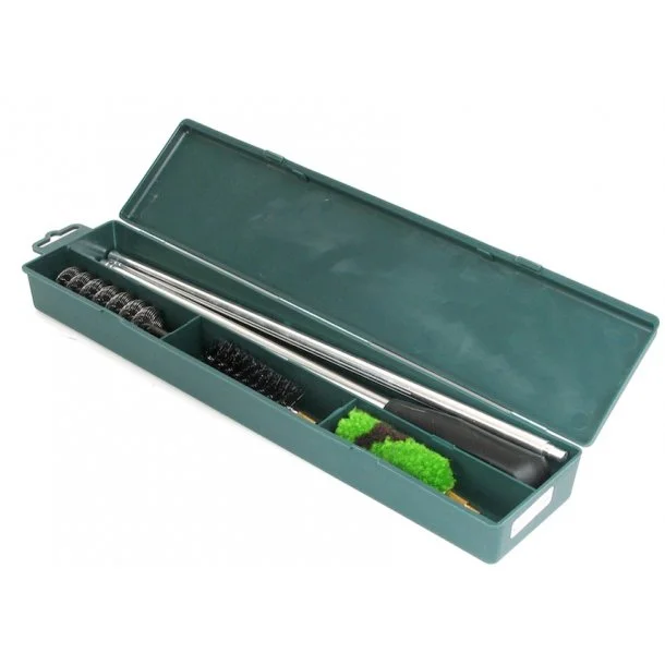 Rens dit haglgevær med et rensesæt fra Stabilotherm. Med dette rensesæt kan du nå helt i bund med den tredelte stang. Til rensesættet får du 3 børste, en spiral-, nylon og en blød bomuldsbørste, og så opbevares alt værktøjet i en praktisk opbevaringsboks, som du let kan have med, når du er på jagt. Rensesættet til dit haglgevær findes til flere kaliber, og indeholder det perfekte værktøj til at rense dit gevær.